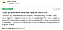 Customer reviews and testimonials further attest to AW Bridal’s reputation for delivering high-quality budget wedding dresses online. Brides frequently commend the brand for its exceptional fit, exquisite designs, and overall value. These glowing reviews not only build credibility but also highlight the consistent satisfaction among AW Bridal’s clientele.